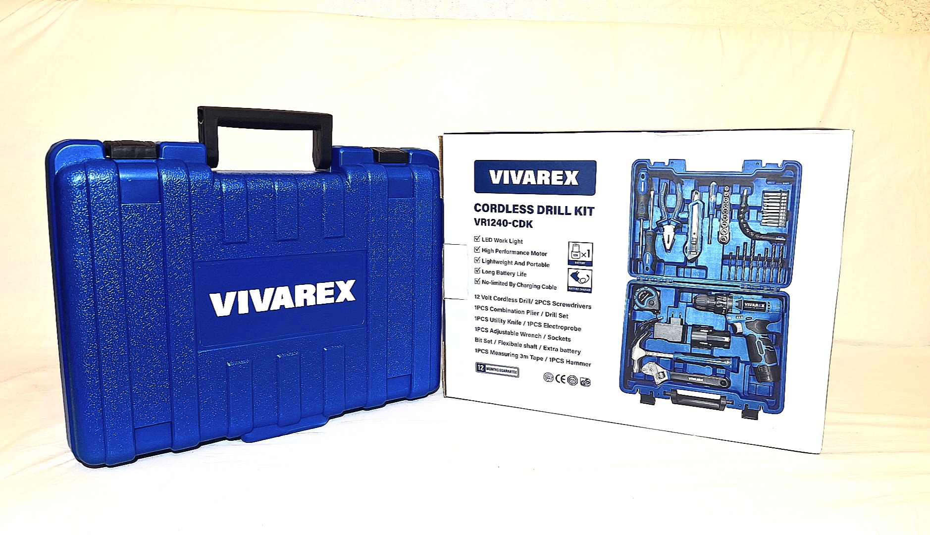 کیت دریل پیچ گوشتی شارژی ویوارکس ۱۲ ولت ۴۰ پارچه دو باتری مدل VR1240-CDK