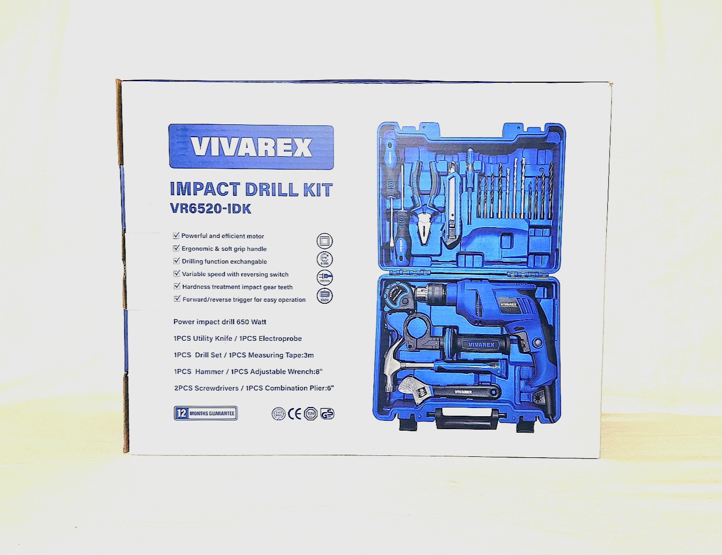 کیت دریل چکشی ۶۵۰وات با لوازم ویوارکس VIVAREX مدل VR6520-IDK